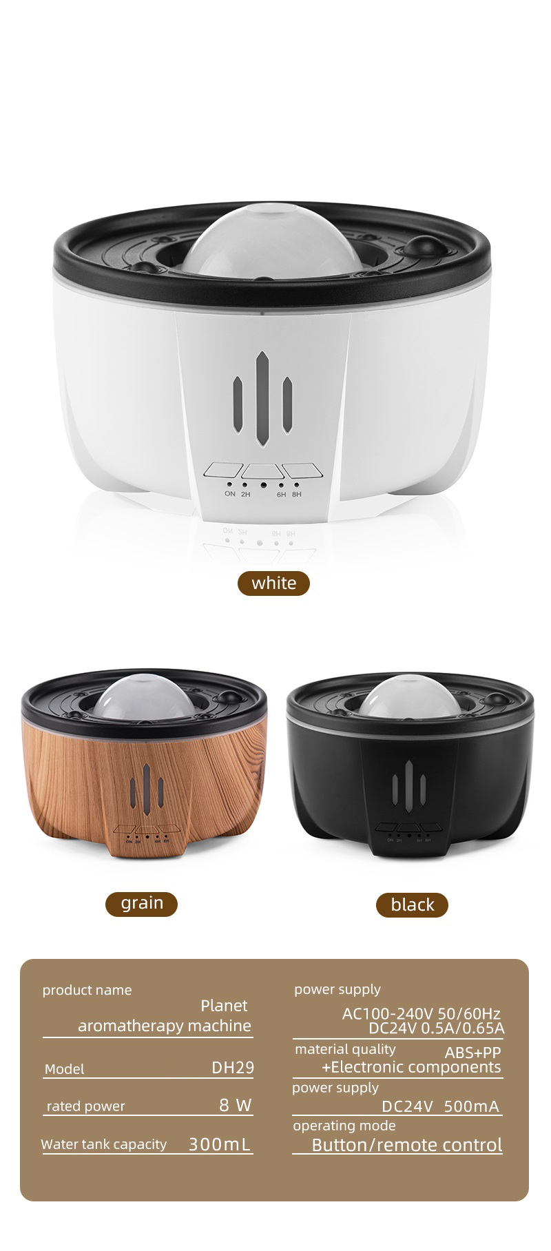 - 3 timer:2H/6H/8H and 3 body color avaliable:black/white/grain